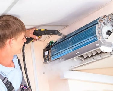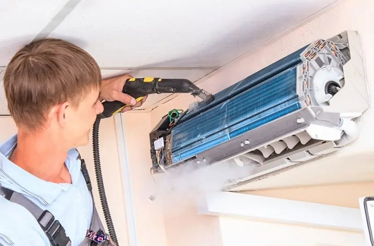 نوفر تنظيف المكيفات الداخلية والخارجية وتعقيمها وتحسين التبريد وإزالة الروائح